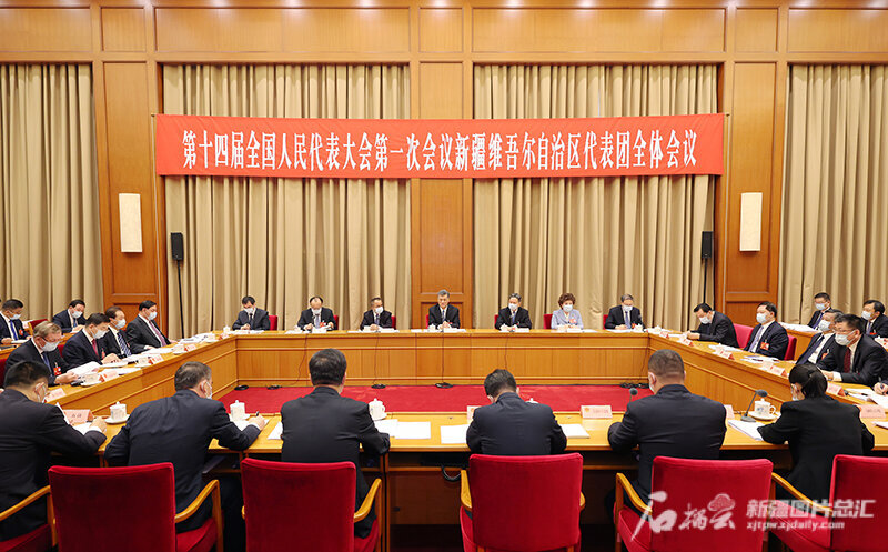 天山网-新疆日报讯(记者王兴瑞报道)3月5日下午,参加十四届全国人大一次会议的新疆代表团举行全体会议,审议政府工作报告。全国人大代表、新疆代表团团长、自治区党委书记马兴瑞主持会议。